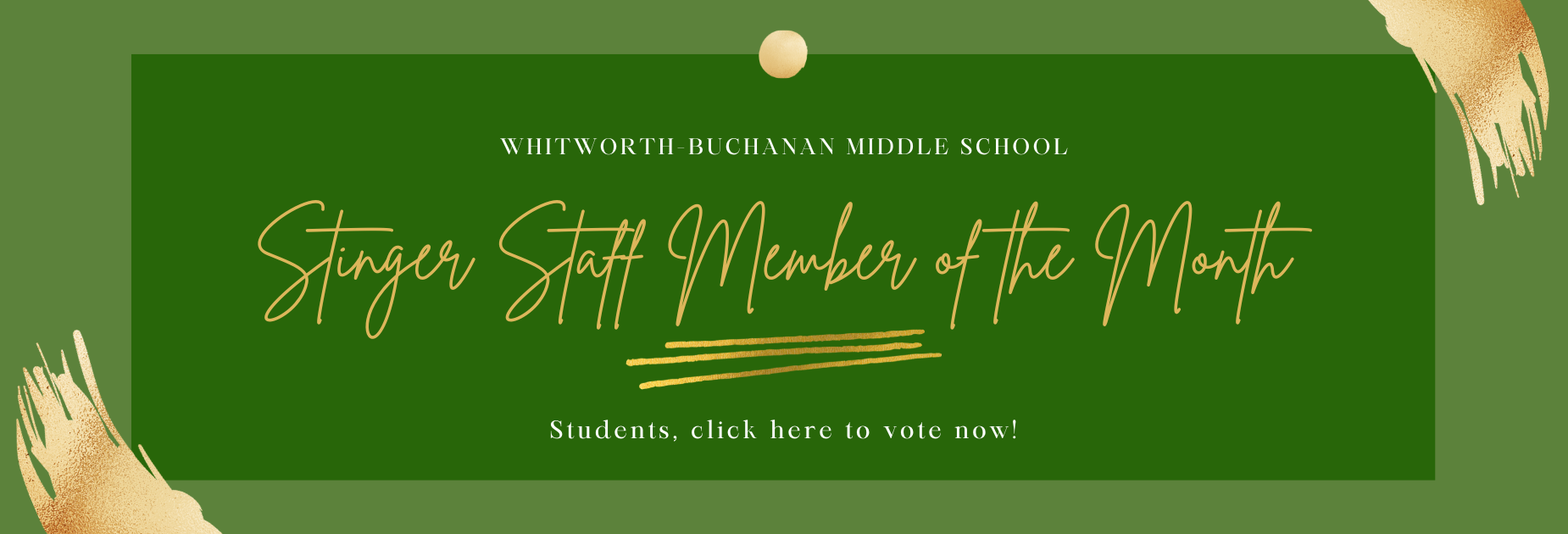 The mission of Whitworth-Buchanan Middle School is to provide each student with a high quality, safe, supportive, and positive learning environment where each learner has the opportunity to reach his/her full potential in high school and beyond.
